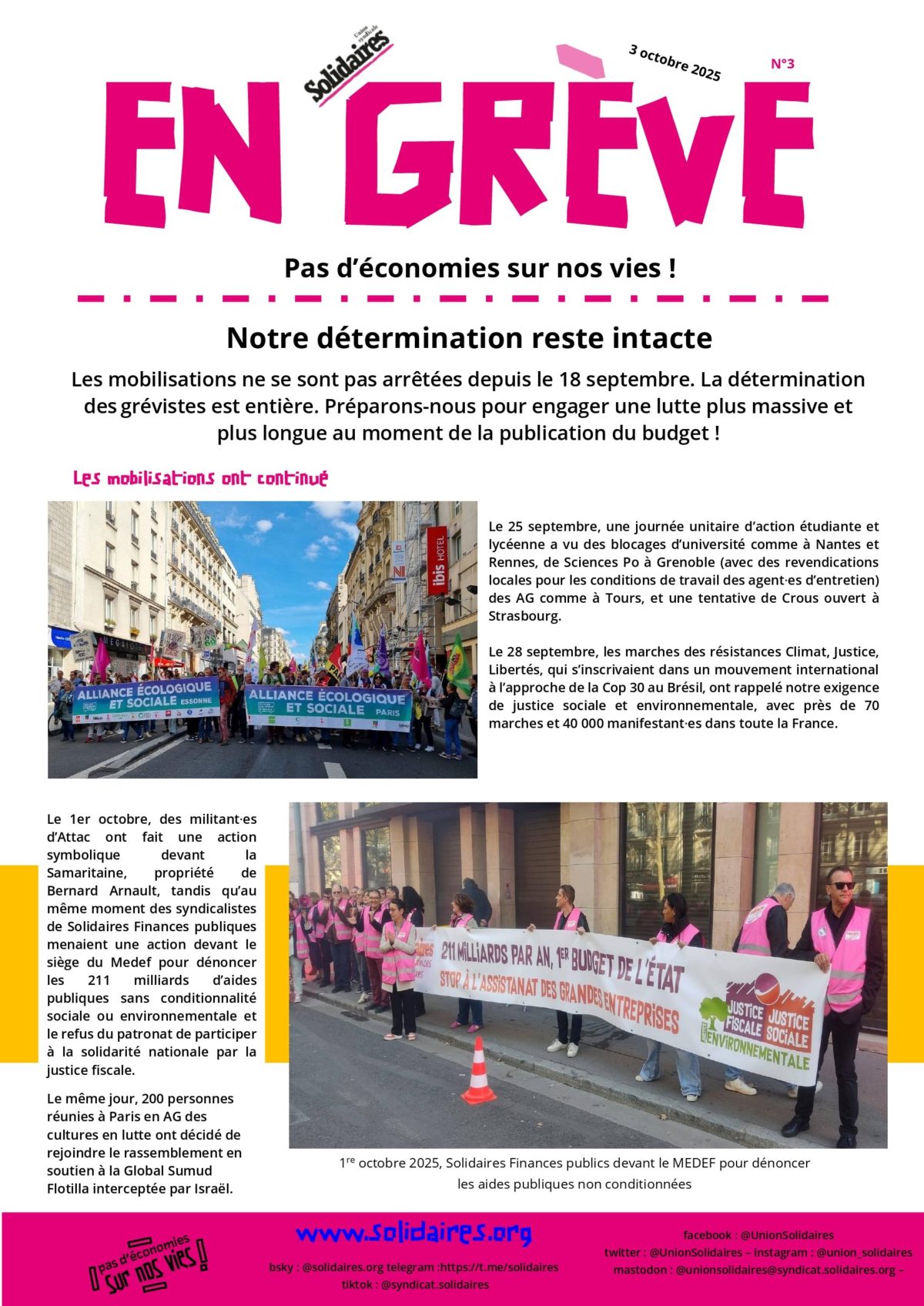 Les mobilisations ne se sont pas arrêtées depuis le 18 septembre. La détermination des grévistes est entière. Préparons-nous pour engager une lutte plus massive et plus longue au moment de la publication du budget !
