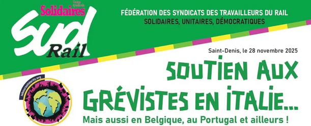 ✊ La fédération SUD-Rail apporte son soutien à la grève et aux manifestations ! Solidarité et coordination internationale des travailleurs et des travailleuses !
