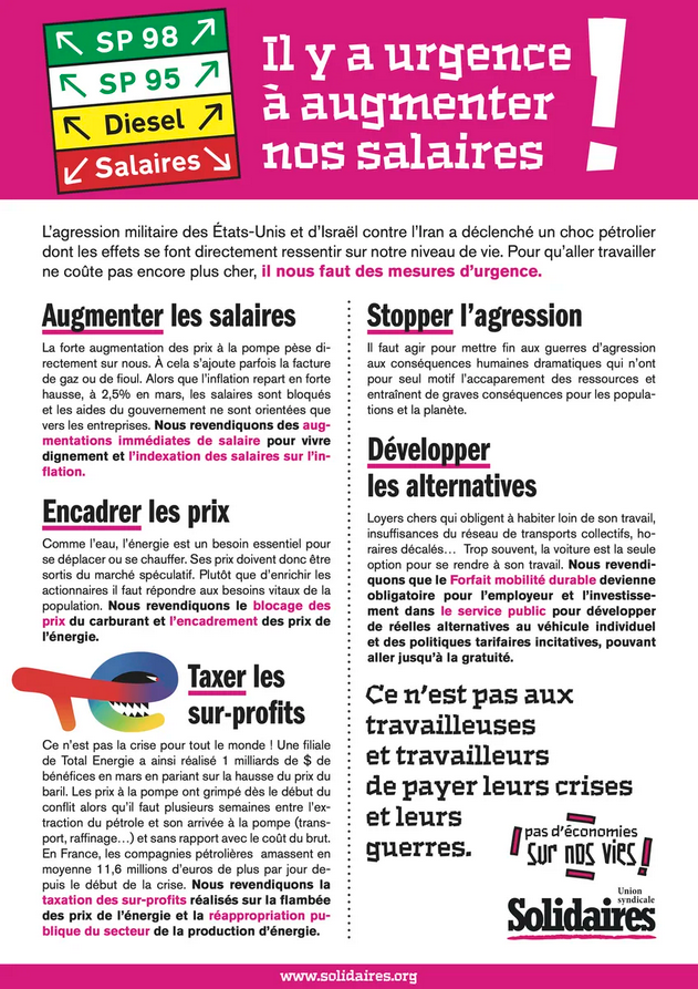 L’agression militaire des États-Unis et d’Israël contre l’Iran a déclenché un choc pétrolier dont les effets se font directement ressentir sur notre niveau de vie. Pour qu’aller travailler ne coûte pas encore plus cher, il nous faut des mesures d’urgence.